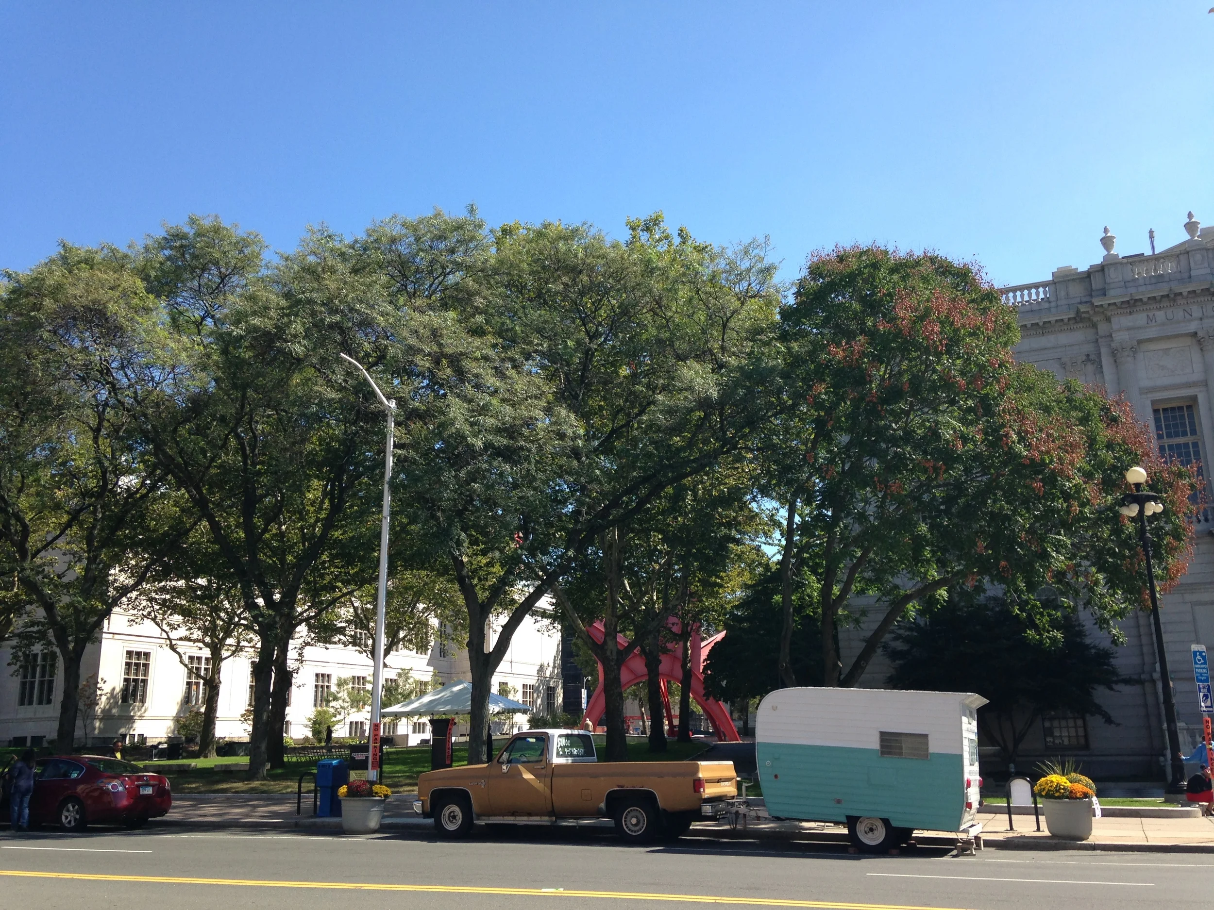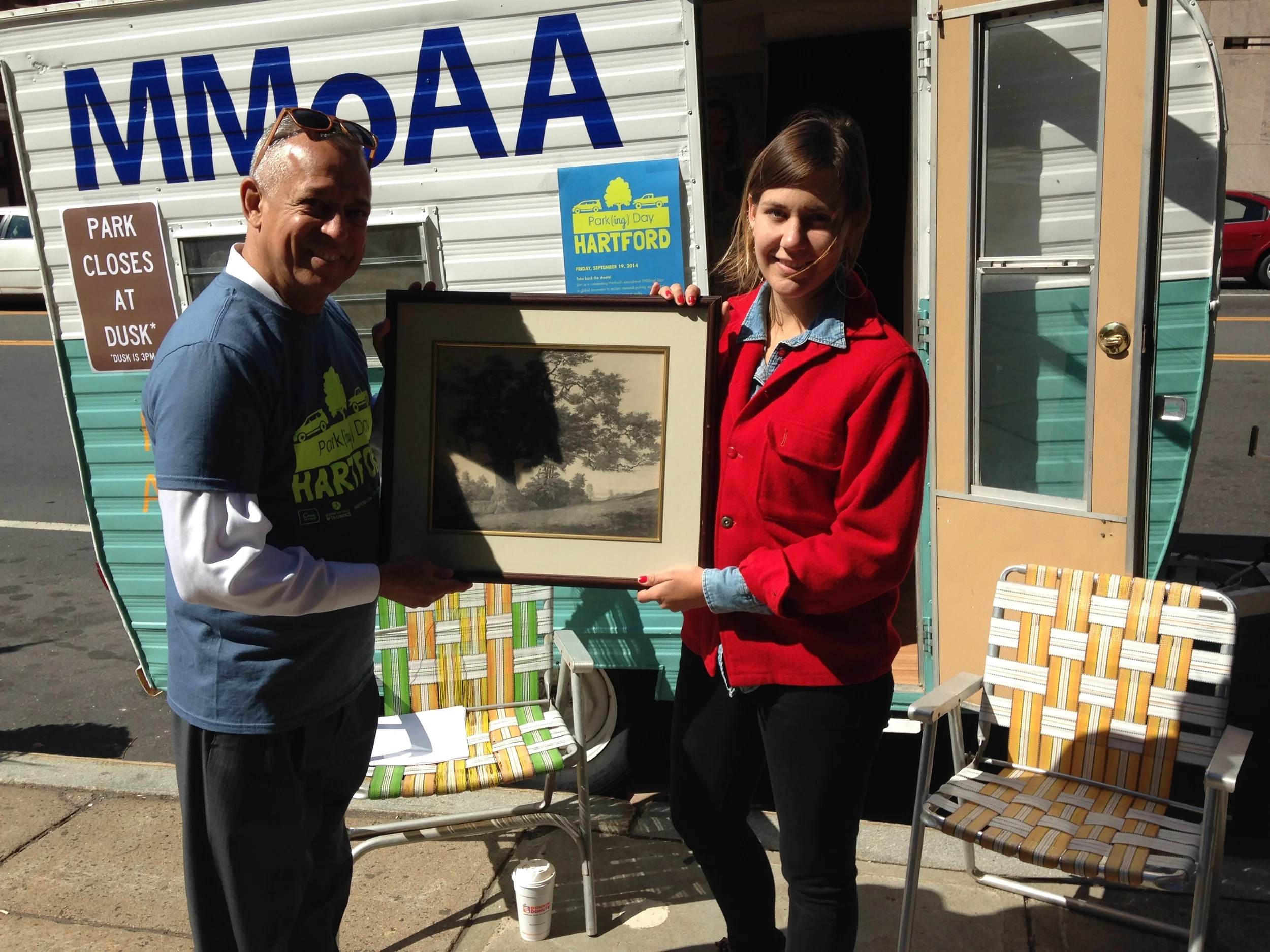MMoAA visited Hartford for an extended weekend of festivals and events, parking by the Capitol Building for the reopening of the Memorial Arch, downtown for iConnect, in front of City Hall for Parking Day and Envision Fest, and at the headquarters for the Connecticut Cycling Festival.